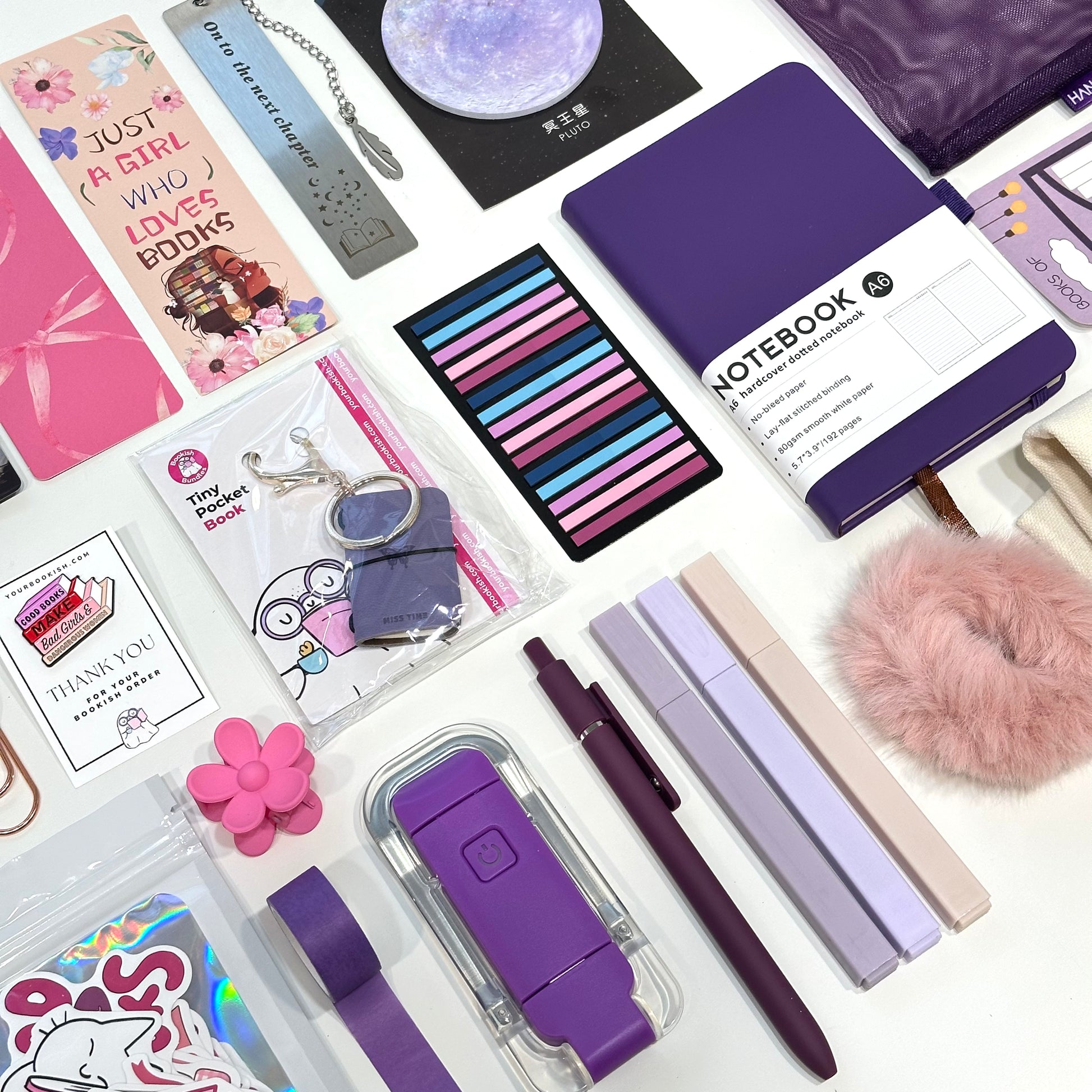 Each bundle is lovingly curated by hand and one-of-a-kind. Photos are for reference — some small items like bookmarks or stickers etc may vary. Two-color bundles are also uniquely assembled, so the color balance may differ. 💌✨