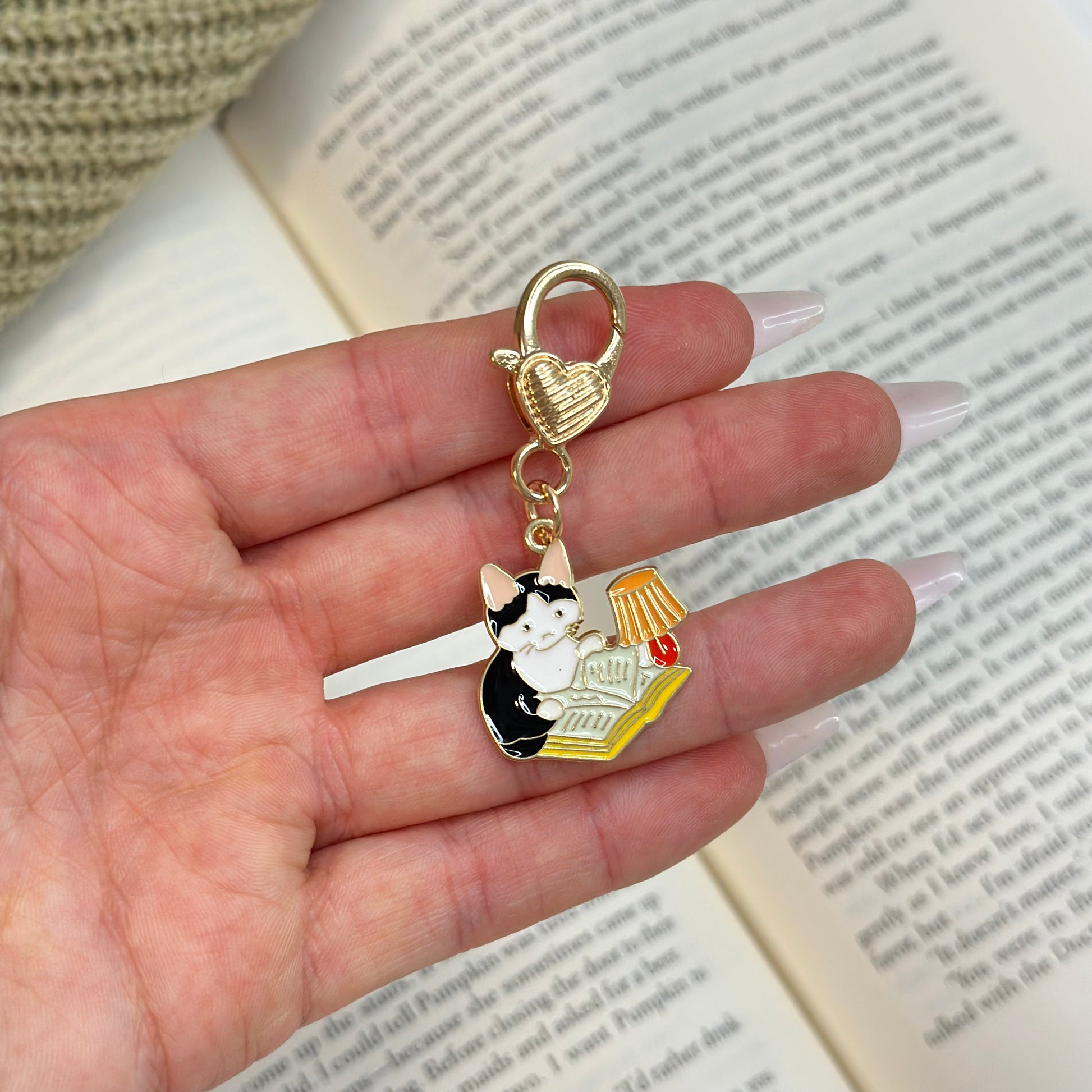 book lover gift, cat keychain, reading accessory, enamel keychain, bookworm gift