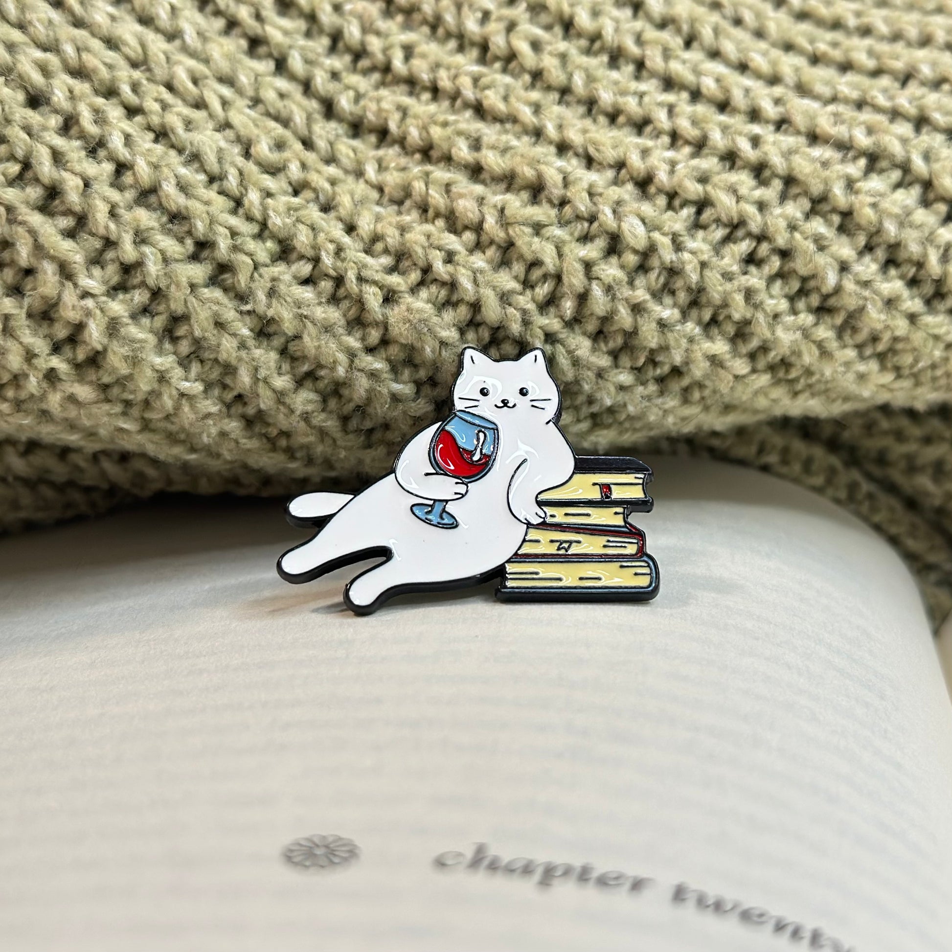 cat lover gift, book pin, reading accessory, enamel pin, bookworm pin