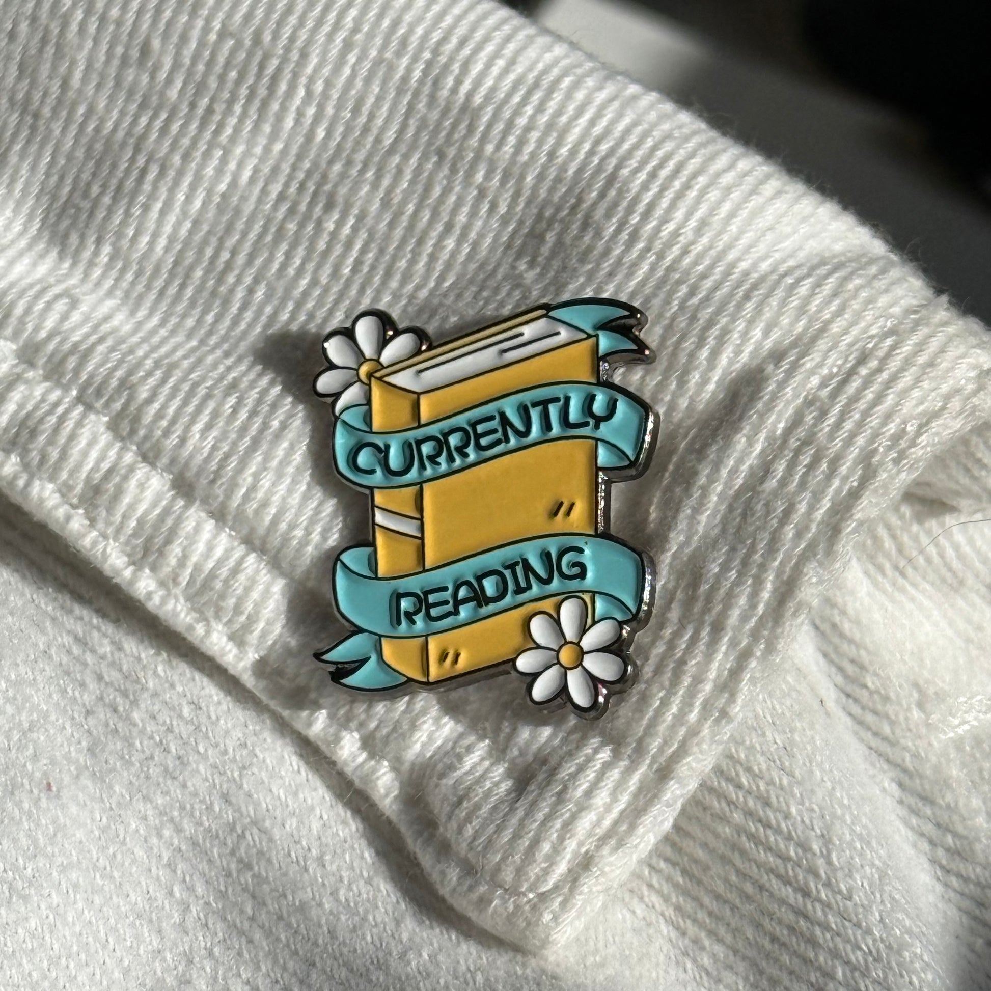 Show off your latest read in style with our Currently Reading enamel pin. Perfect for book lovers, readers, and stationery collectors, this aesthetic bookish pin makes a cozy accessory for jackets, tote bags, backpacks, or pin boards.