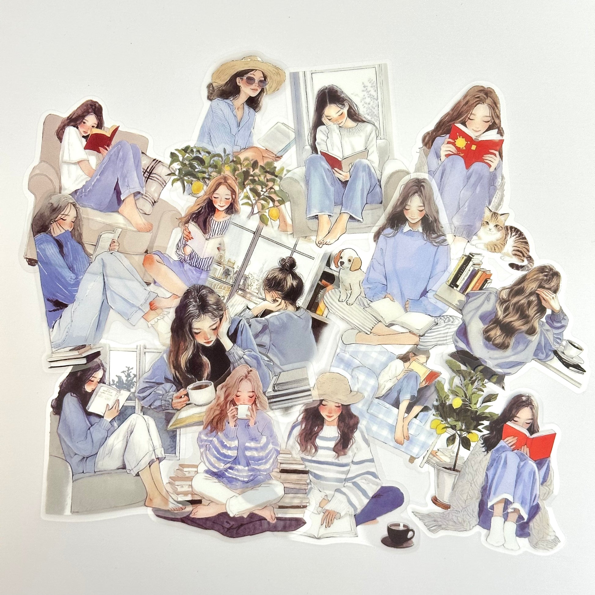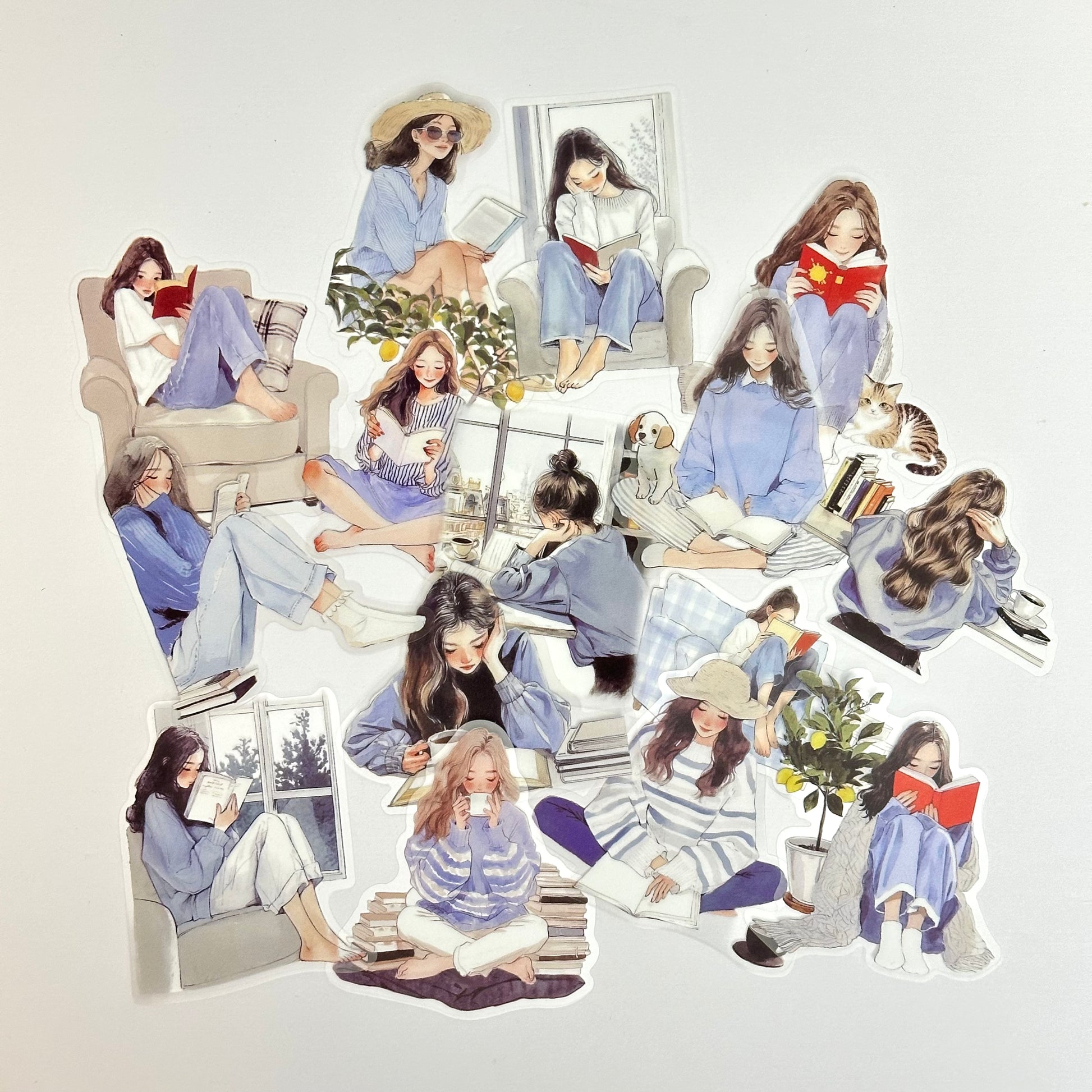 Cozy up your journals, planners, and bookish spaces with our Reading Girl Stickers in Blue Pack ❄️. Each set includes 30 stickers (15 unique reading girl designs, with two copies of each), perfect for decorating notebooks, scrapbooks, and bookish gifts.